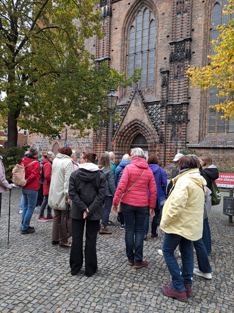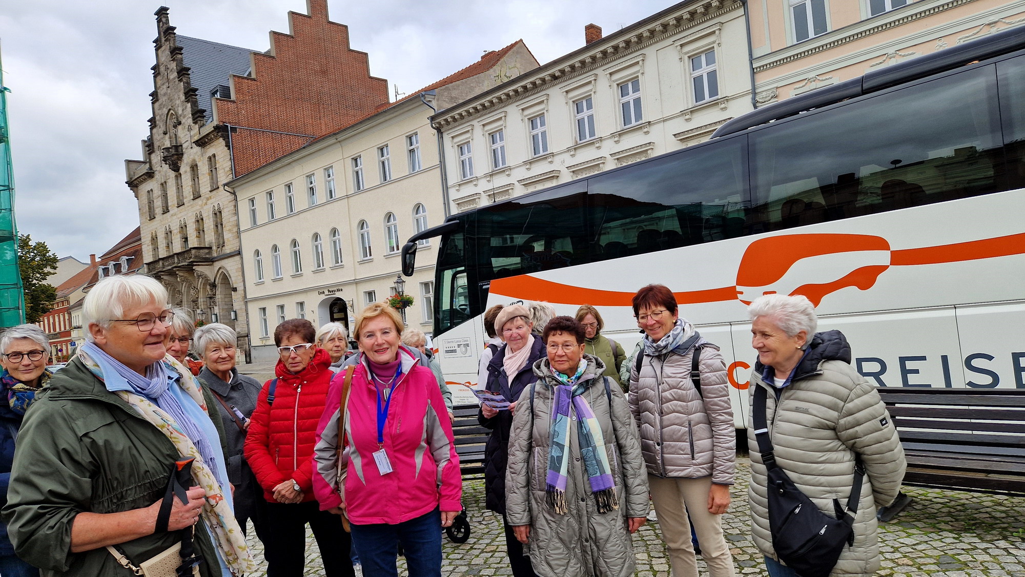 Nach Mecklenburg - Vorpommern sollte die diesjährige Jubiläumstour (40 Jahre unterwegs mit dem Busunternehmen Frericks) gehen. Um 7 Uhr startete Busfahrer Heinz mit seinen 45 Reisenden Richtung Wismar. Dort gab es die erste Stadtführung um 14 Uhr. Am Alten Hafen konnten wir Ostseeluft schnuppern, Fischbrötchen genießen , um danach gestärkt mit dem Stadtführer durch die Altstadt der Hansestadt Wismar zu gehen und seinen interessanten Erzählungen zu lauschen.