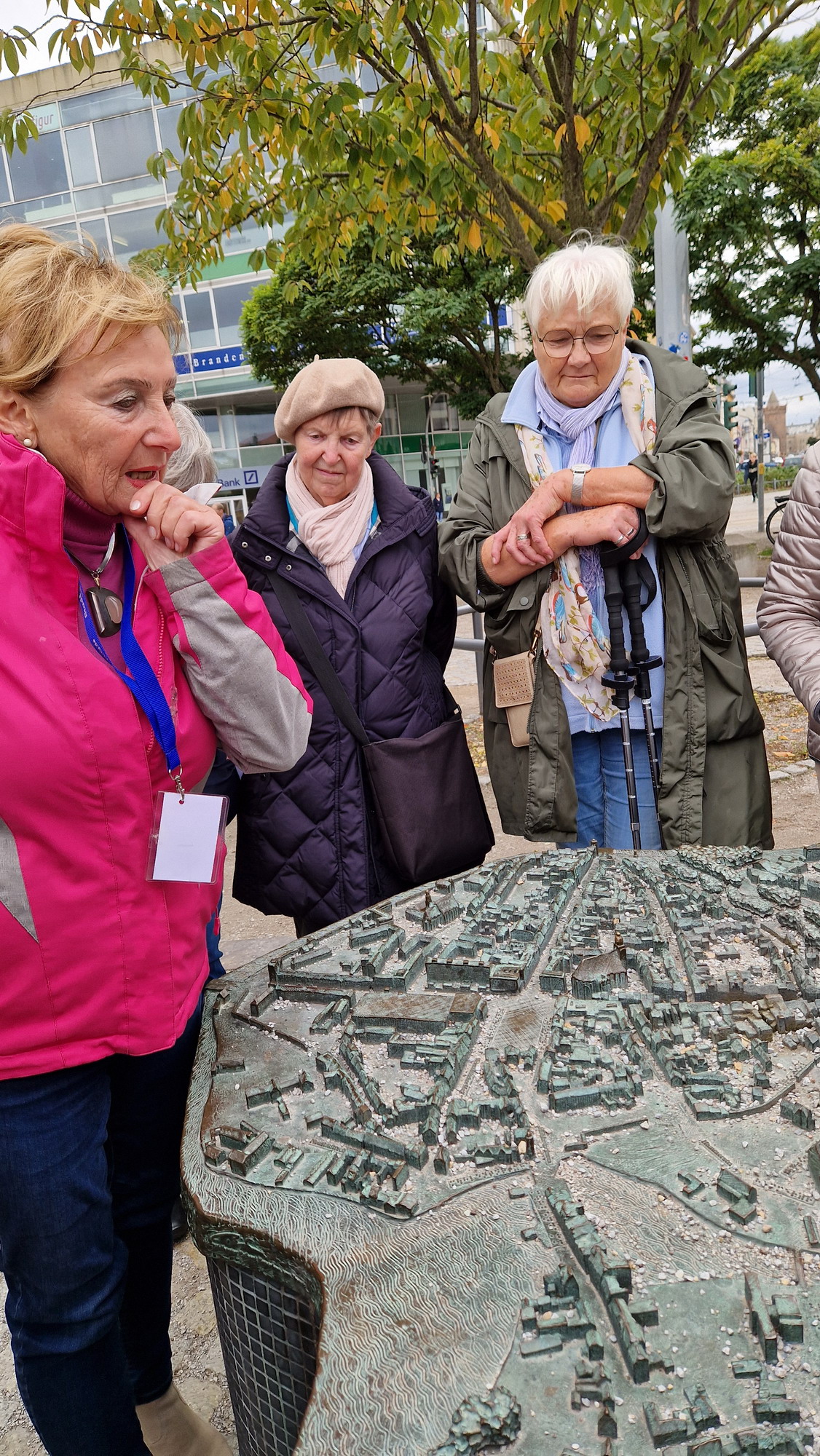 Nach der ersten Nacht im Parkhotel Rügen in Bergen, startete Heinz mit uns Richtung Stralsund. Unsere Reiseführerin Kerstin Schmidt leitete uns souverän und "allwissend" durch die folgenden Tage. Die erste Führung an diesem Sonntag brachte uns die Stadt Stralsund näher. Schon weithin sichtbar sind die drei großen Backsteinkirchen. Sie prägen die unverwechselbare Silhouette der Stadt zu Wasser und zu Land.![]() |